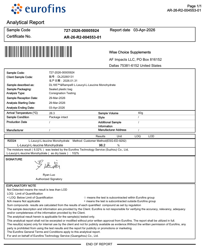 | Compound | Dileucine Dipeptide | Free Leucine | BCAA Blend |